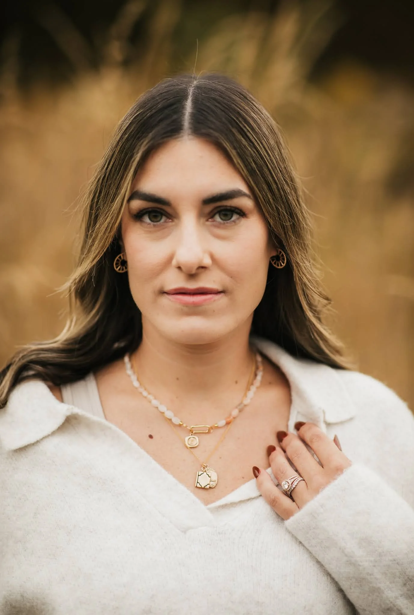 19 Inches with a stainless steel circle connector in the front to hang your charms off of- you can also wear this in the back:) lots and lots of baby green stones .1.5mm beads- so they are pretty dainty!
