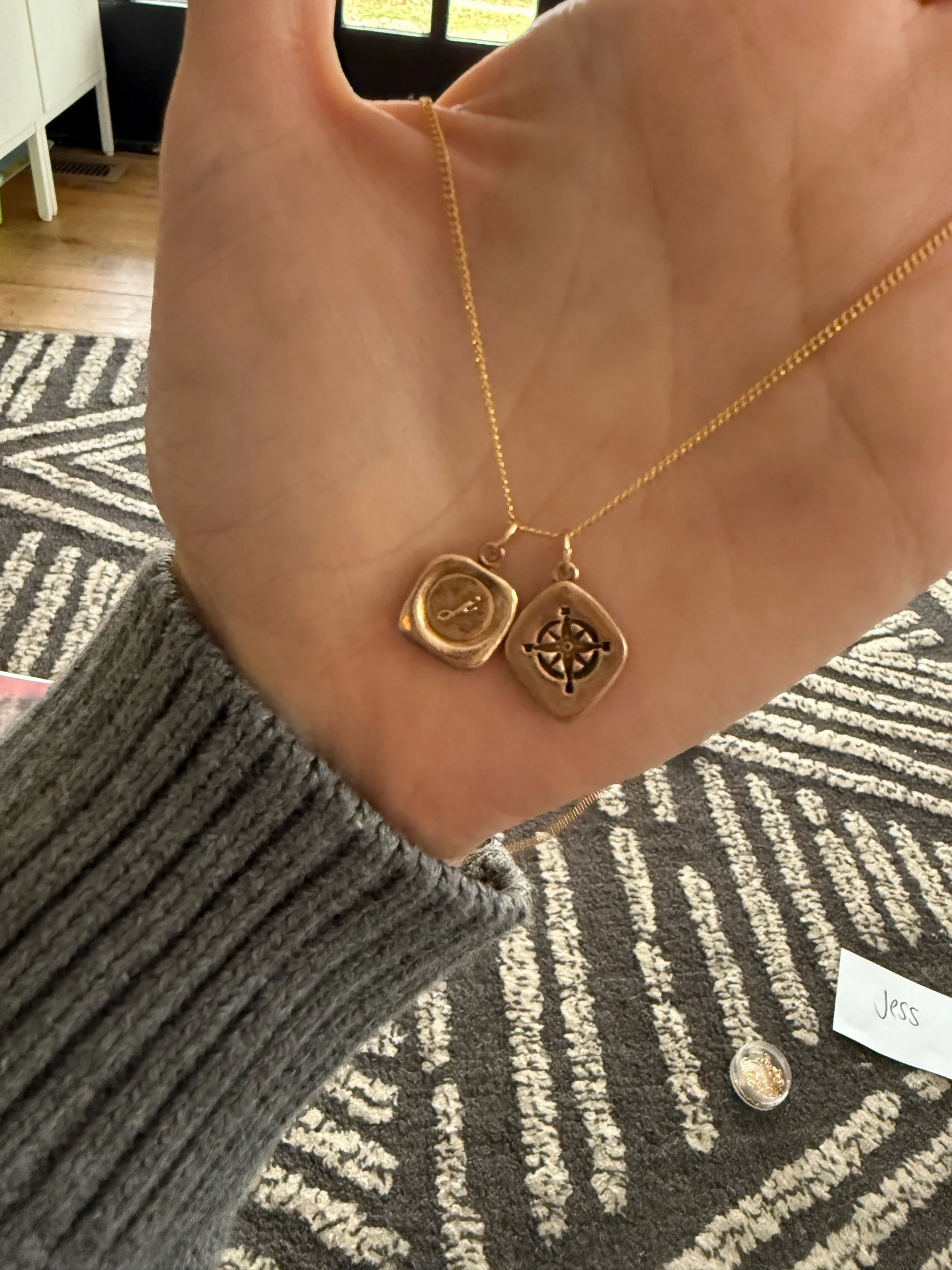These are inspired by an Anthropologie wall charm. Can you even imagine? It was huge and oh so lovely. I decided i needed to make these to be charms for your neck, instead of your wall:) These are made out of custom wax seal letters, that I had custom made and then a vintage frame that i also had custom made so that the letters would fit inside. This is as custom, as custom gets, and I promise you wont find a charm like it anywhere else! Send me your letter, and I’ll make you a charm! Leave it in the note to seller, section please! All letters are capital letters. Each charm comes with a gold filled jumpring.