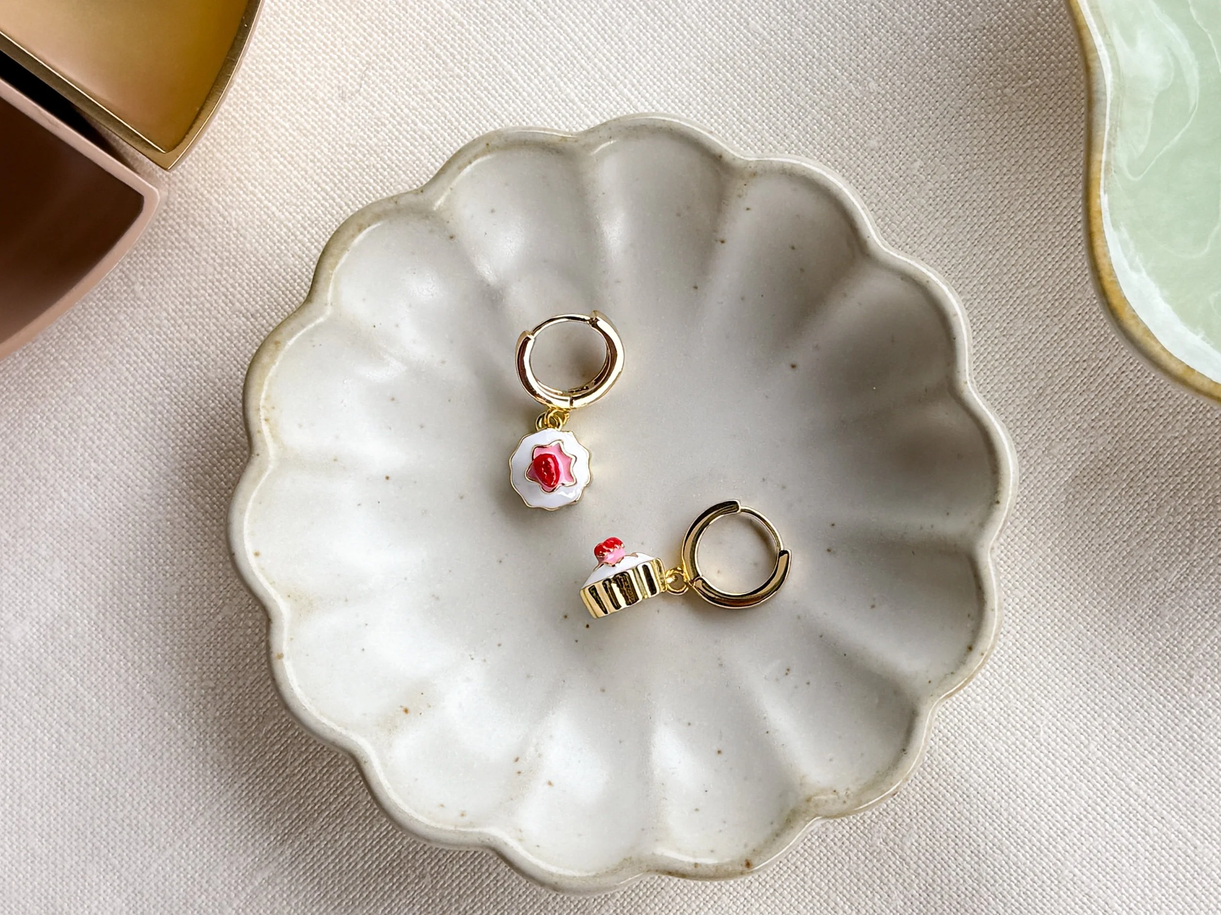 I love these. At just an inch in length these have such a fun top. Gold vermeil hoop with cz details. These tear drop charm sparkles with a fun crater like texture.