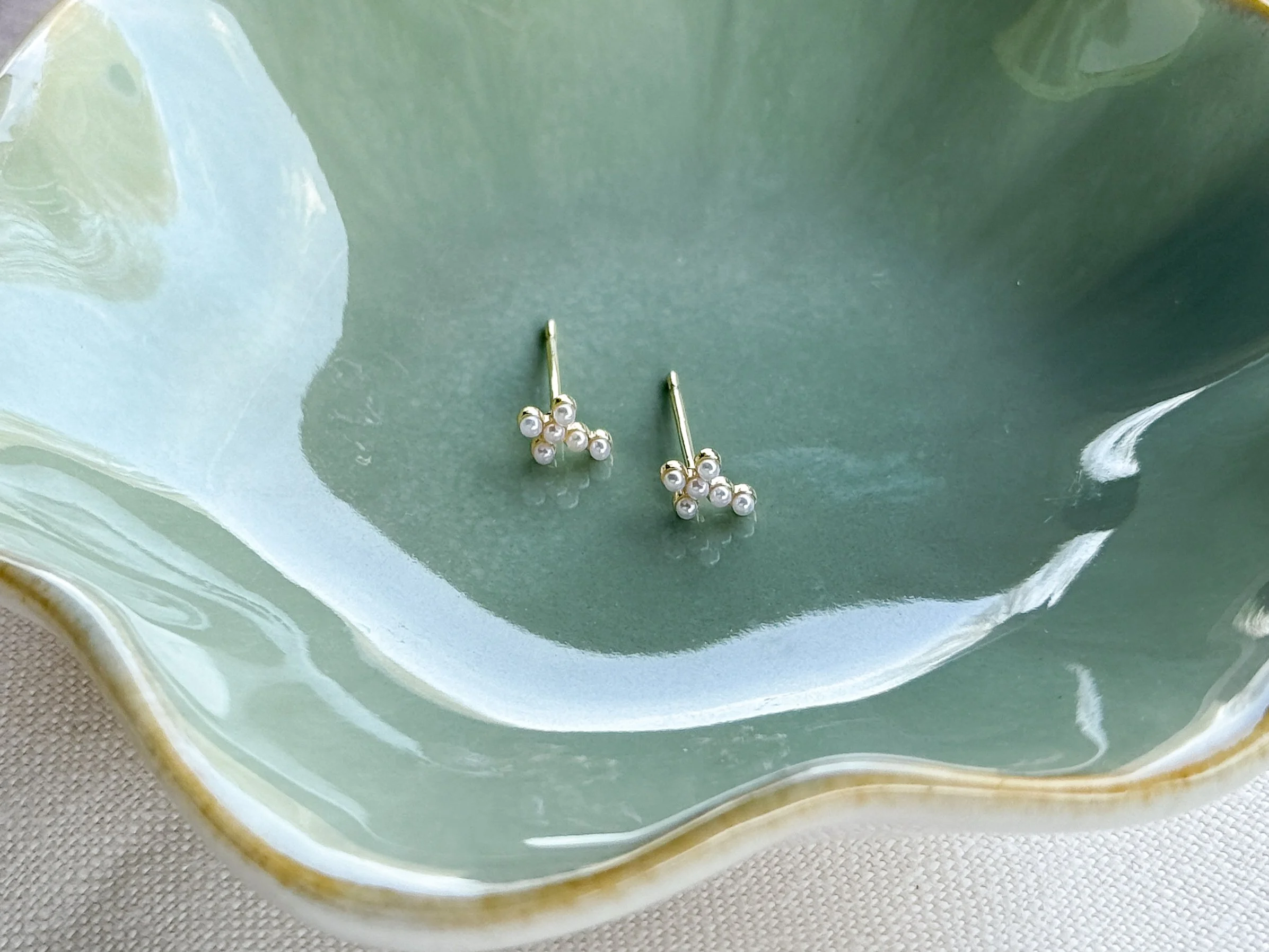 Tiny gold filled flower studs. These are smaller than half an inch. Little baby cz stone in the center. So delicate and simple.