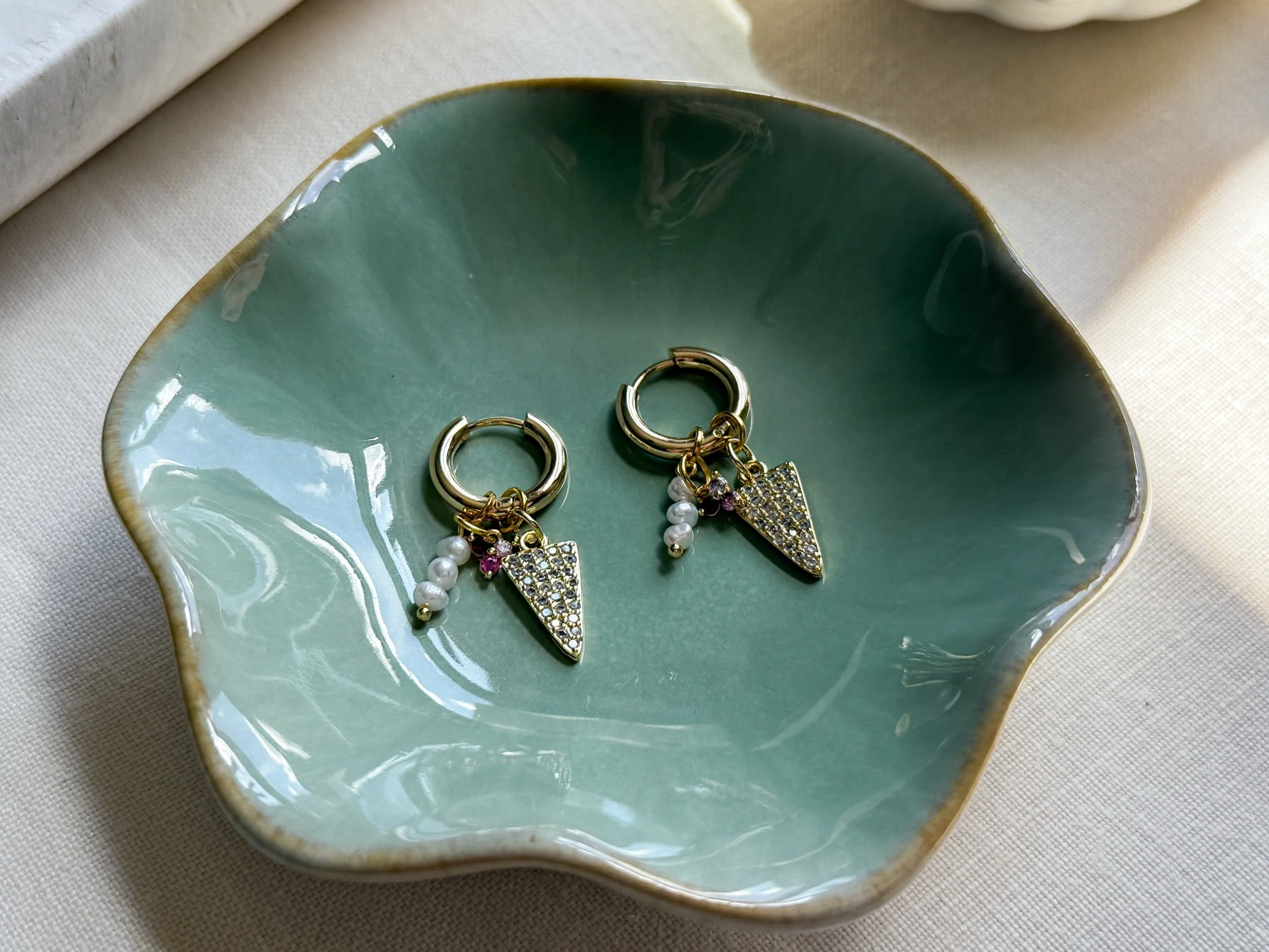 Charm hoops. Cz details and freshwater pearls. 15mm gold filled hoops. These are about an inch in length. The charms slide on and off to change the order or to wear alone.