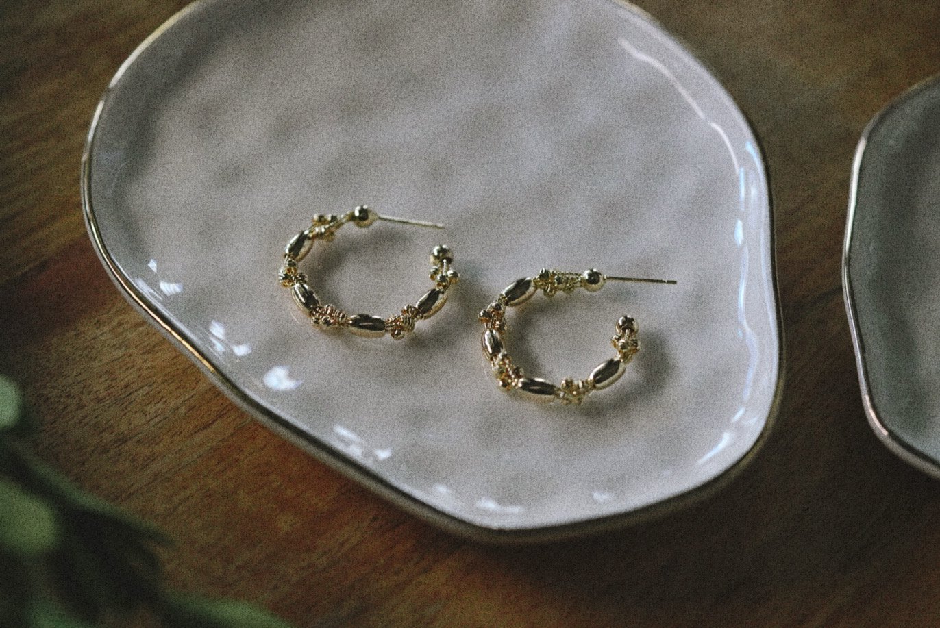 A tiny opal paired with a soft gold curve —This is sorta a stud. Sorta a hoop? It’s beautiful and so easy to throw on with anything! She has been becoming one of my new favorites! This is almost half an inch- she’s a baby!