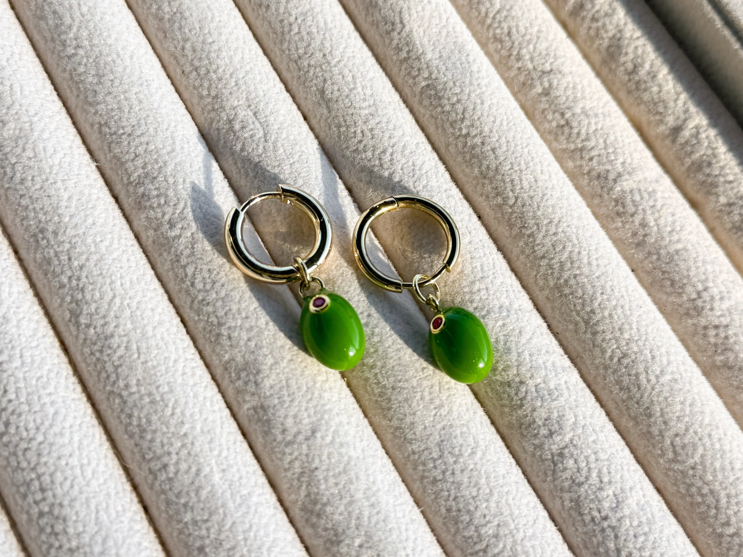 Made out of resin to look like a precious stone- I printed an olive branch on top and these are stunning! Gold filled hoop with cz details. These are just a tad over 1 inch in length. Top can be changed upon request!